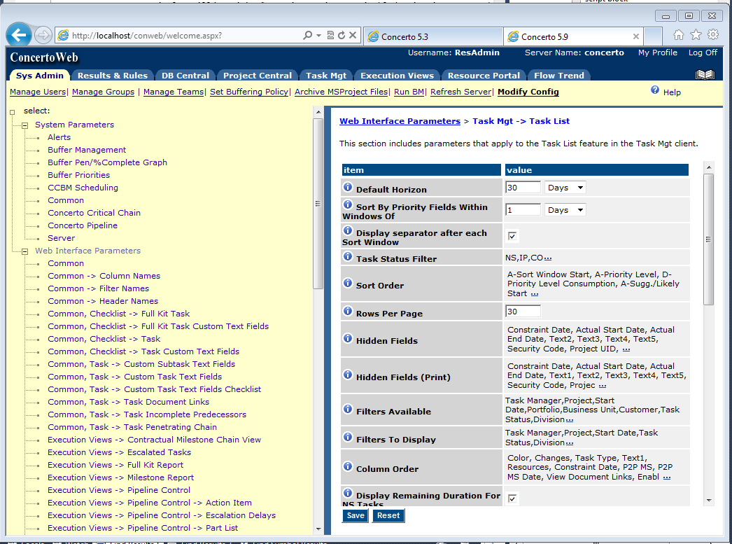 Realization’s Concerto application is a web-base project management software that is packed full of configurable options, so much so it’s impossible for a normal human being to remember them all. There are configurations to change every text, to set the default sorting criteria, the columns to show on a particular report, the columns to show on a print preview screen, the default filter selections, and so on. You get the point.