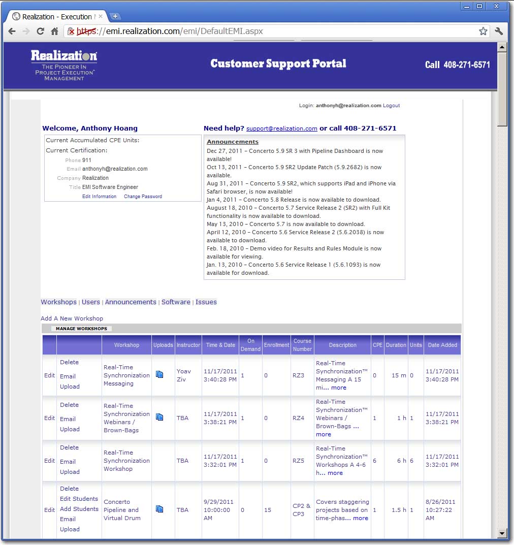 The Realization technical support team needed a way to streamline their processes with customers using a web-based application. They occasionally conduct workshops and learning sessions and needed a way for our clients to register for these classes. The IT team also needed a way for certain clients to be allowed to download files and software releases. It was my responsibility to come up with a design and take it to completion.