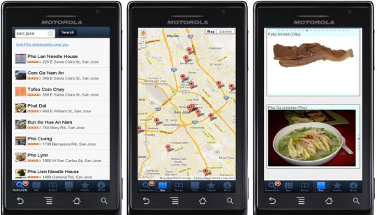 Everything you need for the delicious Vietnamese noodle soup, Phở, is in this app. Quickly get a list of all the Pho restaurants near you and plot them all on a map. Or enter in a city name to get all the Pho places in that city. Also included is a recipe to make your own Pho. View the photo gallery of all the Pho toppings you usually get in a restaurant – brisket, steak, fatty brisket, tai, chin, gau, pho ga, etc. Finally, an app my parents would use.